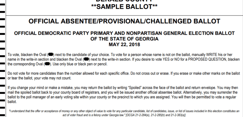 Absentee applications will be accepted on Friday, May 18, until 4 p.m. Check the county website at http://www.dekalbvotes.com and look under “Current Election Information” for updates.